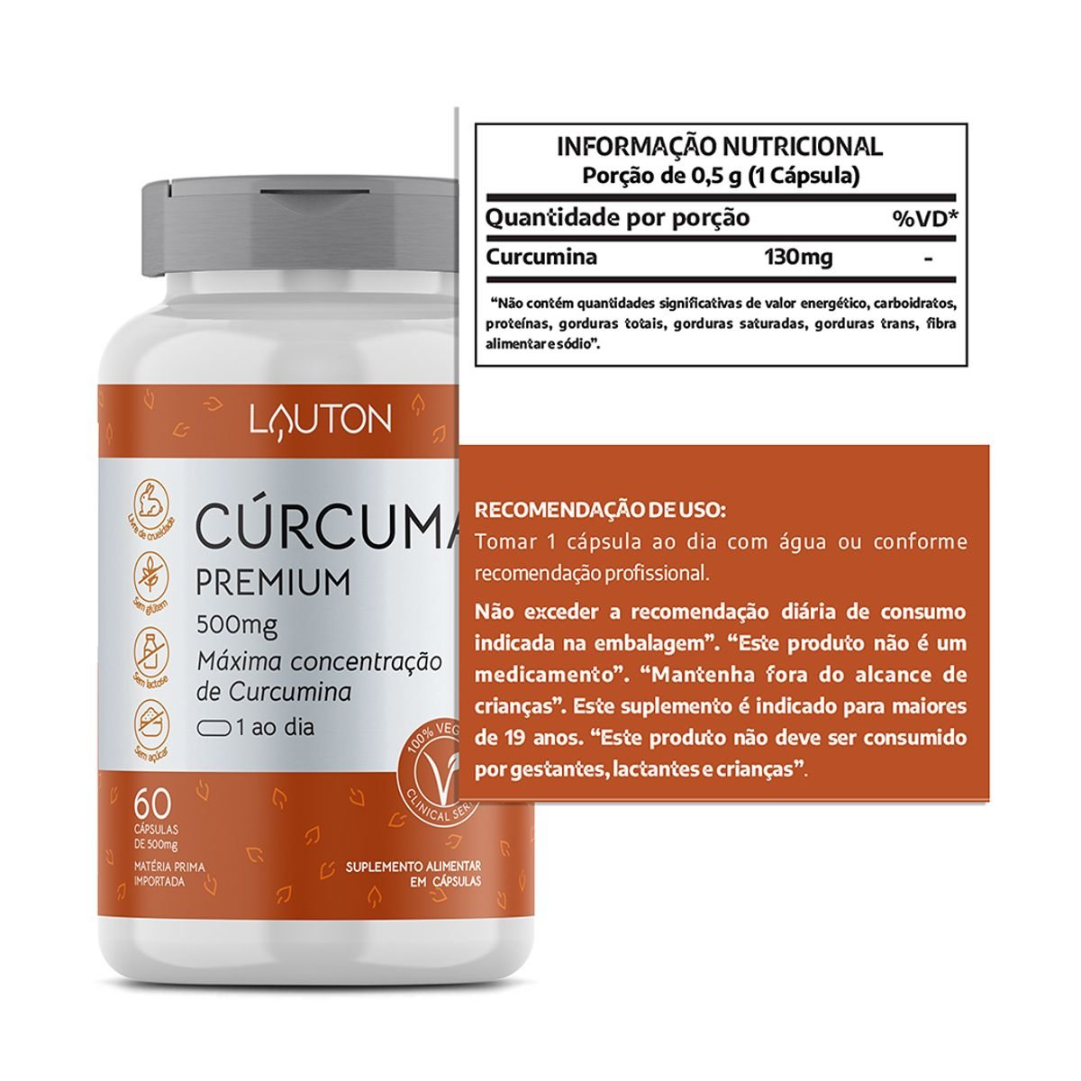 Ingredientes Extrato de Rizomas de Cúrcuma (Curcuma longa L.), antiumectante: dióxido de silício. Cápsula vegetal: Hipromelose. “NÃO CONTÉM GLÚTEN”.