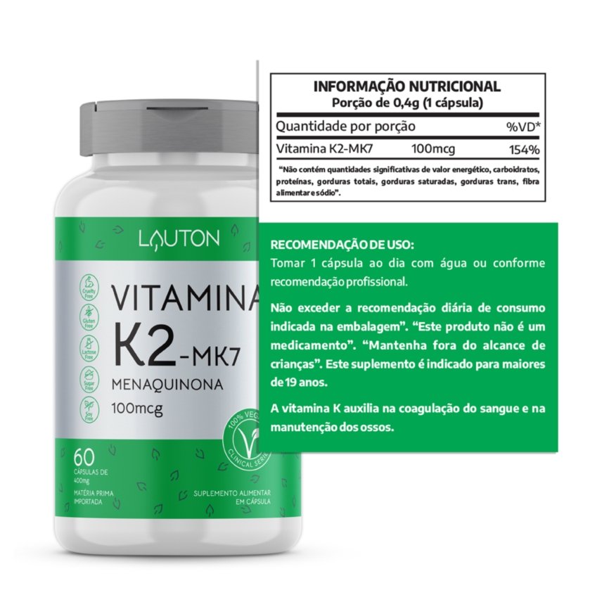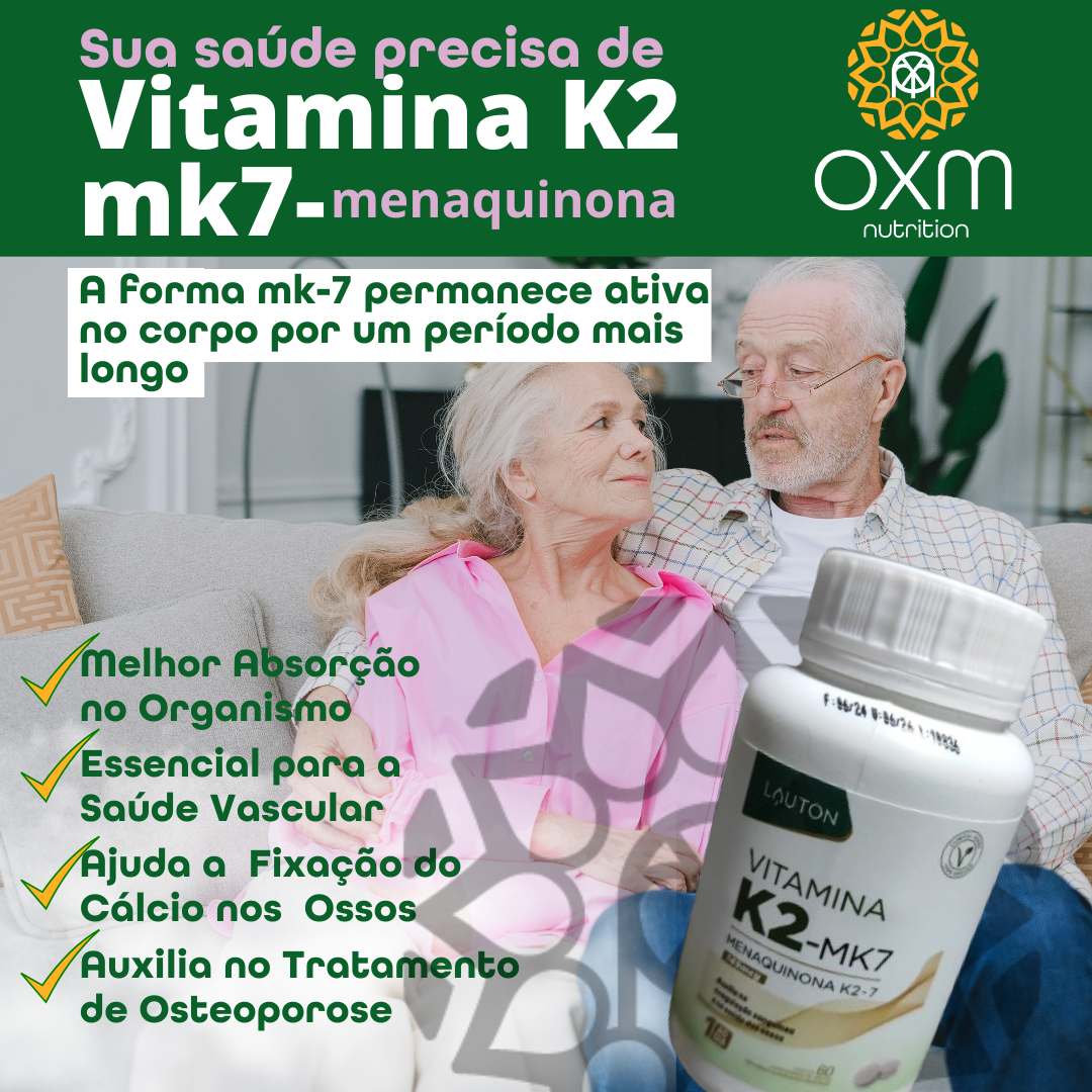 • MK7: É um subtipo da vitamina K e que tem um papel importante no risco de doenças cardiovasculares e densidade óssea por exemplo.